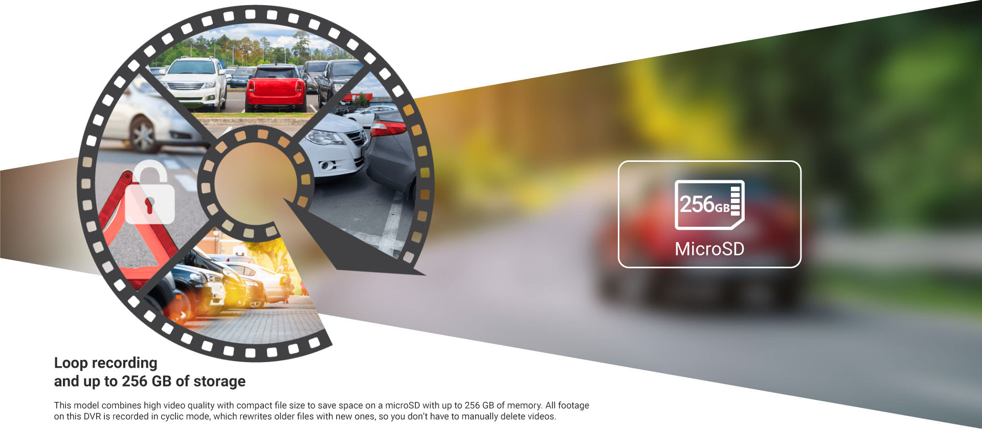 Navitel R285 2K is your reliable road assistant fitted with a six-layer lens that provides a 140° field of view. This allows the R285 2K to capture a wide view of the road ahead of your vehicle, as well as parked cars on the roadside, and pedestrians on pathways. R285 2K combines high quality videos with compact file size to save space on a microSD card with up to 256GB of memory (microSD not included). All footage on this dashcam is recorded in a cyclic mode, which overwrites older files for new ones, so you do not have to manually delete old clips.